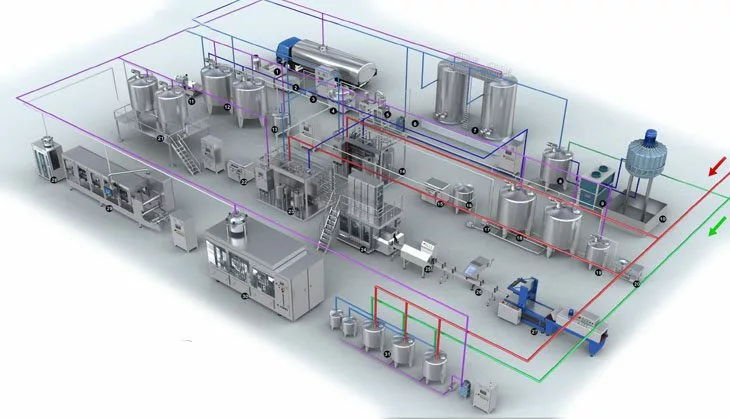 そんな課題を解決するのが「3D組立モデル」です。工場全体を3Dで再現し、建物の構造・機械設備・配管・電気系統などをひとつのモデルにまとめることで、