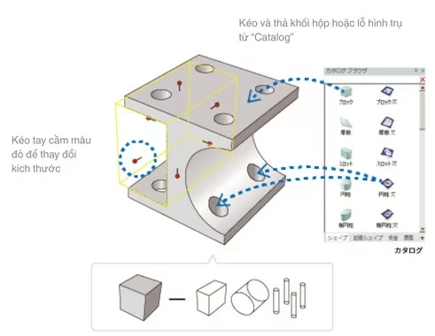 Khác với các phần mềm như Inventor hay AutoCAD, IronCAD cho phép người dùng kéo thả các hình khối 3D trực tiếp từ thư viện vào không gian làm việc, không bắt buộc thiết lập ràng buộc hình học ngay từ đầu. Nhờ đó, người thiết kế có thể nhanh chóng mô phỏng ý tưởng và điều chỉnh thiết kế một cách linh hoạt.